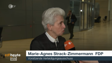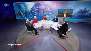Bei Maybrit Illner trifft Marie-Agnes Strack-Zimmermann (FDP) auf SPD-Außenpolitiker Ralf Stegner. Sie diskutieren mit Matthias Gebauer vom „Spiegel“, der Politikwissenschaftlerin Jana Puglierin (ECFR), mit dem Publizisten und Pazifisten Franz Alt sowie mit Ben Hodges, Generalleutnant a. D.
