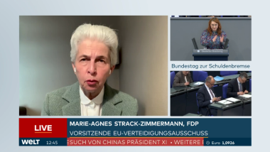 SWR - Mehr Geld für Verteidigung – die FDP-Verteidigungsexpertin hält das für richtig, warnt aber davor, langfristig Sicherheit mit mehr Schulden zu finanzieren. Im ARD Interview der Woche spricht Marie-Agnes Strack-Zimmermann über die USA als nötigen Partner, zu große Hoffnungen in die Atommacht Frankreich und die Zukunft der FDP.