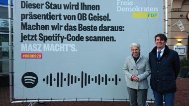 " Im Bereich der dritten Umweltspur in Düsseldorf von der A46 in Richtung Innenstadt staut sich noch immer der Verkehr. Die FDP-OB-Kandidatin Marie-Agnes Strack-Zimmermann hat bereits mehrfach mit Aktionen dagegen protestiert. Am Montag war es wieder soweit."