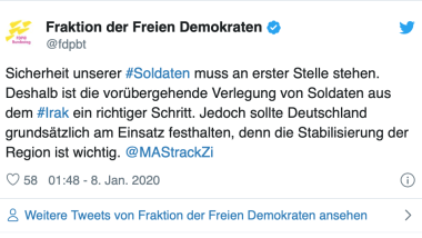 "Abwarten. Darüber sind sich alle einig: Wenn die irakische Regierung möchte, dass die Bundeswehr abzieht, muss sie gehen. Doch über das Mandat selbst gibt es neue Diskussionen."