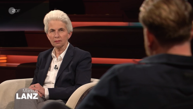 FDZ - Marie-Agnes Strack-Zimmermann, der ehemalige Fußball-Profi und Europameister von 1996, Fredi Bobic, die Journalistin Kerstin Münstermann und der Autor und Sportjournalist Lucas Vogelsang diskutieren bei Markus Lanz über Fußball und was der mit Politik zu tun hat.