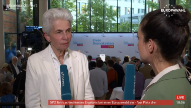 Bayern 2 - Nach der Europawahl warnt die FDP-Spitzenkandidatin Marie-Agnes Strack-Zimmermann vor einer Koalition der EVP mit rechten Parteien: "Es gibt eine breite Mitte, die hat die Mehrheit, auch den Rechten und Linken gegenüber. Und diese demokratische Mehrheit muss zusammenstehen gegen radikale Tendenzen."