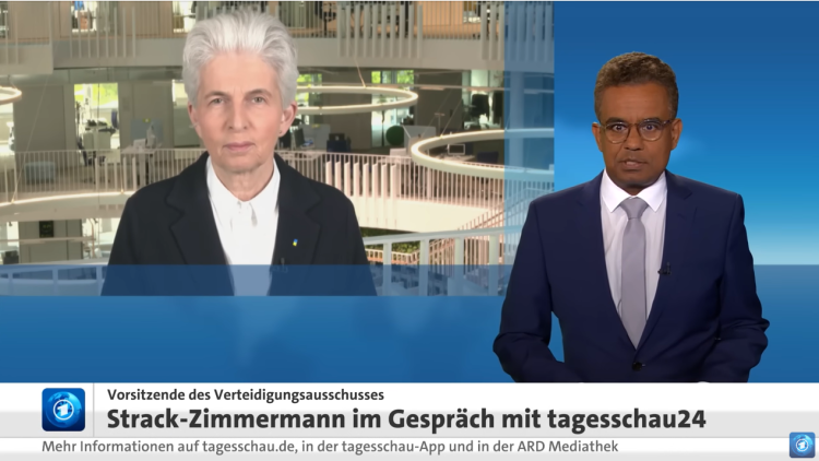 Dr. Marie-Agnes Strack-Zimmermann VIDEO | Strack-Zimmermann im Interview: Ukraine-Lage, Waffenlieferungen und NATO-Strategie Screenshot aus der Sendung 04.07.2022